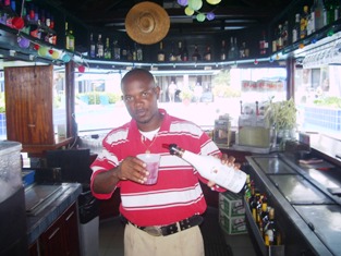 I've known Barbara and Wilfred, the owners of this establishment for many years and they've always provided a great ambiance and meal for their guests and those of the hotel. They're known for their outstanding, fingerlicking local Sunday buffet of barbequed ribs and chicken. The entire Island specializes in ribs and chicken, however the chef and staff at this restaurant has dedicated her time and talents to perfecting the maranade and secret barbecue sauces that come along with the meats. The food and beverage manager Don as seen in the pic below, can be seen whisking about the floor at all times ensuring that all guests needs are attended to.